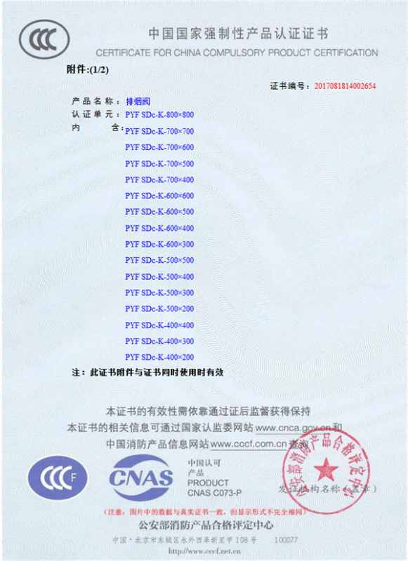 產(chǎn)品全通過國家消防檢測中心檢測,獲得CCC證書